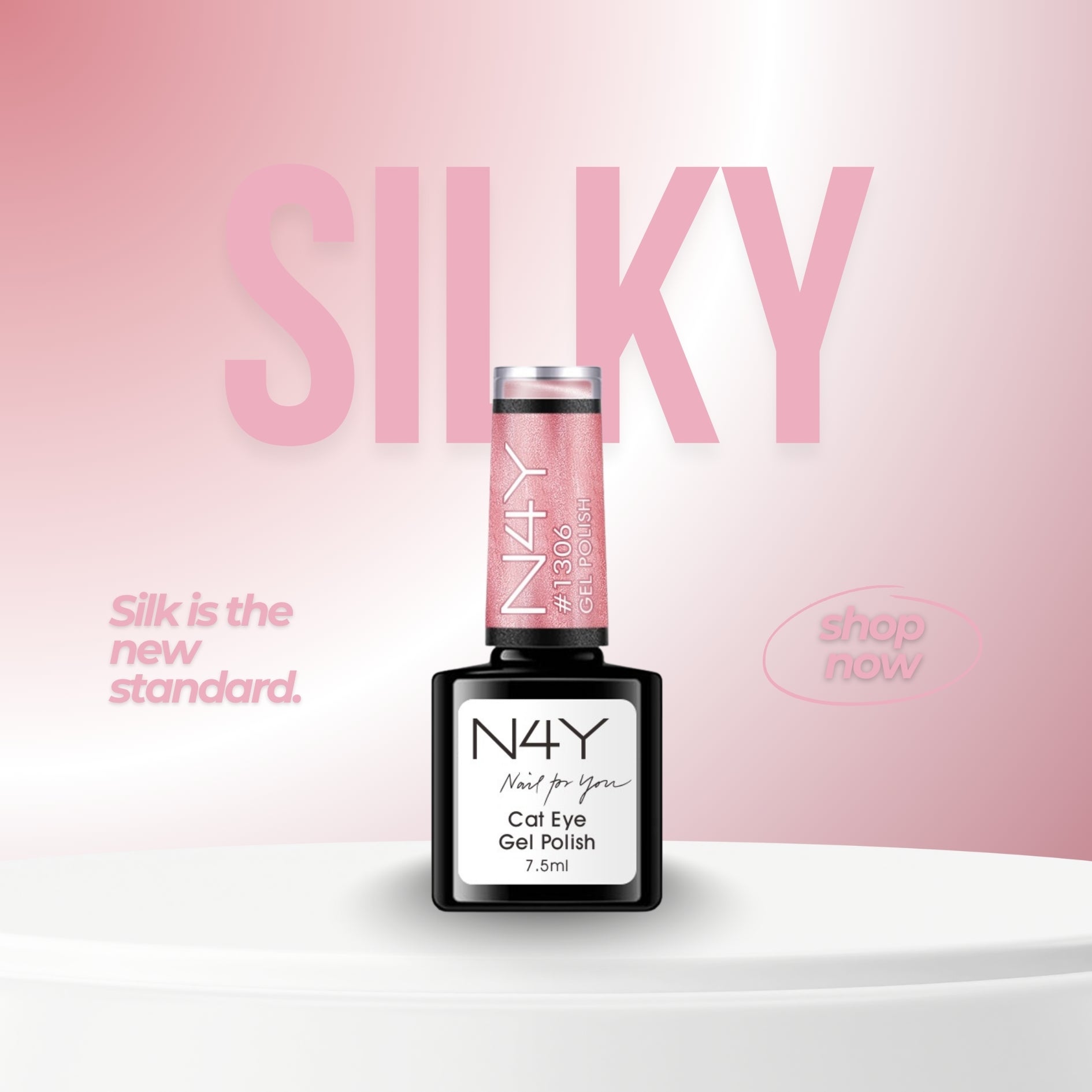 En blød, uimponeret rosa med det karakteristiske silk-look. Det er nuancen, der definerer ”clean girl”-æstetikken i 2026. Klassisk, rolig og med et diskret cat-eye twist, der fanger lyset som ægte silke.
