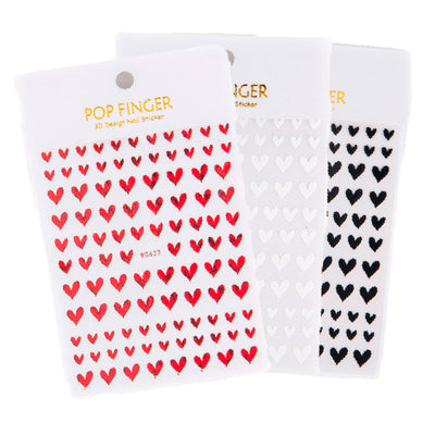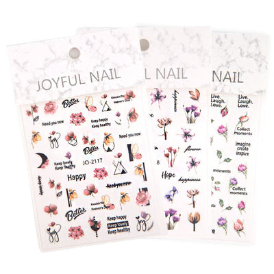 Negle Stickers 2D er et super sjovt produkt , som er nemt at lægge på dine negle og det giver et flot resultat. Negle Stickers 2D findes i alle mulige former og figurer eller farver og det er kun fantasien der sætter grænsen for kreativiteten. Disse nail art negle stickers 2D er selvklæbende og kan lægges direkte på gele negle eller akryl negle, de kan også nemt lægges på naturlige negle, så du behøver ikke have kunstige negle på for at bruge disse nail art stickers 2D. Mere...Vores vand negle stickers fungere som en vand tattoo, de dyppes i vand og lægges på dine negle, herefter kan du slutte af med en topcoat eller en gele topcoat for et mere holdbart resultat. De fleste som ikke kan male flotte motiver som blomster, dyr, mennesker, eller skrift, kan med fordel bruge negle stickers, det er naturligvis langt nemmere og de fleste gange pænere end hvis du selv skal sidde og male en hund i fri hånd. Det er også billigere at købe en negle sticker end at købe maling til selv at kunne male en hund på dine negle. Med en negle sticker klipper du blot motivet ud og dypper i vand og lægger på neglen, nemmere bliver det ikke med disse negle stickers.