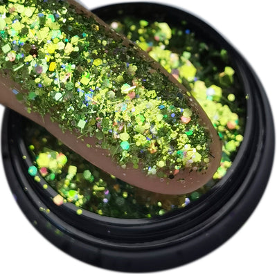 Glitter Magic er en mix glimmer af store og små glimmer, lægges bedst i et sticky layer gele
